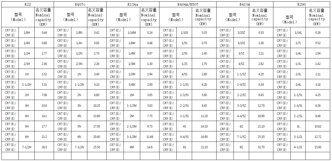 - 適用R22, R134a, R407c, R404A/R507,R410A,R290冷媒等介質(zhì)。
