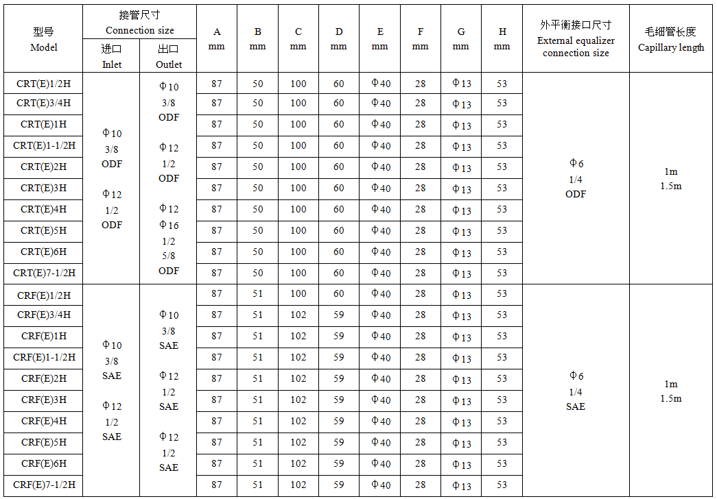 - CRT/CRF為內(nèi)平衡式;CRTE/CRFE為外平衡式。