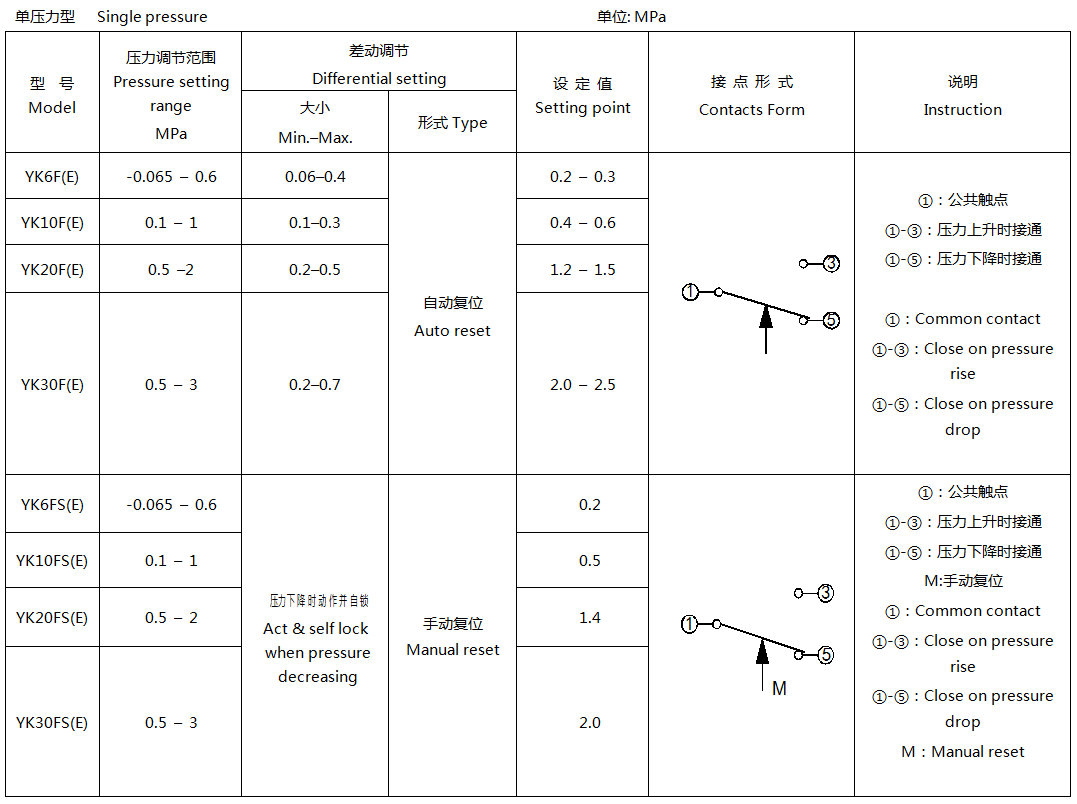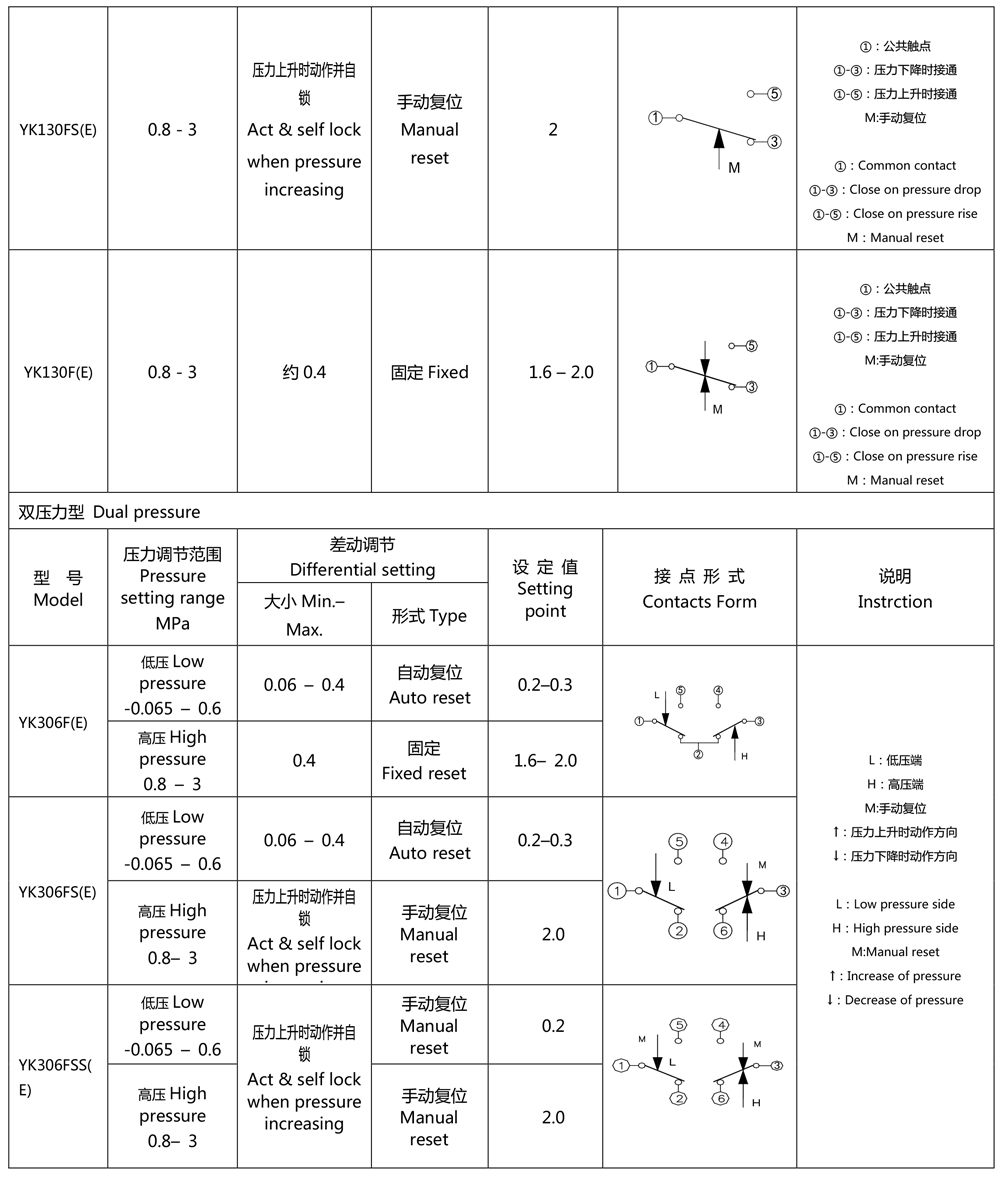 - YK系列壓力控制器產(chǎn)品用作壓力控制和壓力保護(hù),當(dāng)系統(tǒng)壓力到調(diào)定值時(shí),開關(guān)自動(dòng)切斷(或接通)電路。