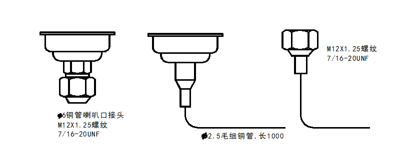 - 接頭為標(biāo)準(zhǔn)的喇叭口接口,M12×1.25或7/16"-20UNF螺紋。